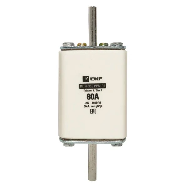 Плавкий предохранитель ножевого типа ППН-35, номинальный ток 80А, габарит 1 fus-35/250/80
