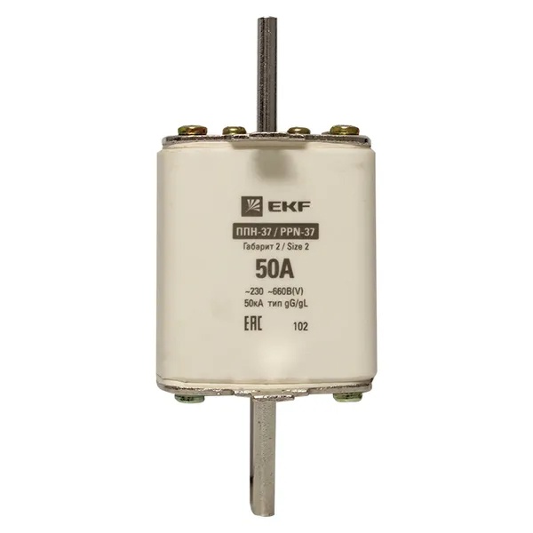 Плавкий предохранитель ножевого типа ППН-37, номинальный ток 50А, габарит 2 fus-37/400/50