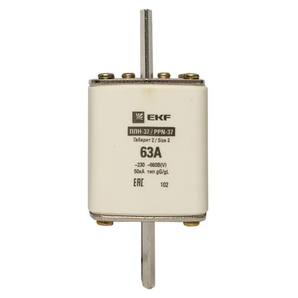 Плавкий предохранитель ножевого типа ППН-37, номинальный ток 63А, габарит 2 fus-37/400/63