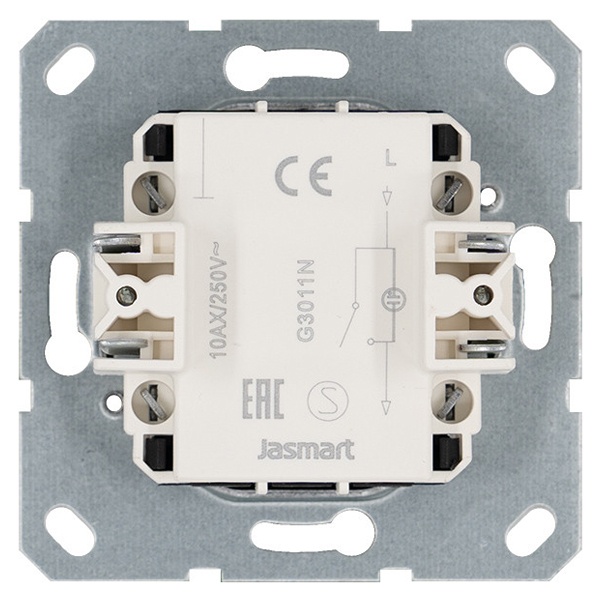 Электрический 1-клавишный выключатель света с подсветкой Jasmart G скрытой установки белого цвета с винтовыми клеммами G3011NW