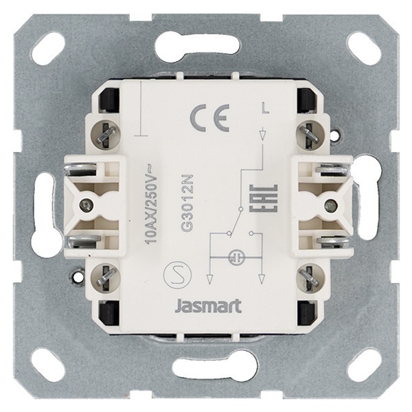 Электрический 1-клавишный переключатель света Jasmart G с подсветкой скрытой установки белого цвета с винтовыми клеммами G3012NW