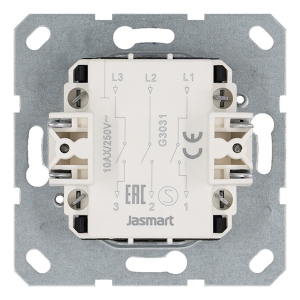 Электрический 3-клавишный выключатель света Jasmart G скрытой установки черного цвета с винтовыми клеммами G3031PB