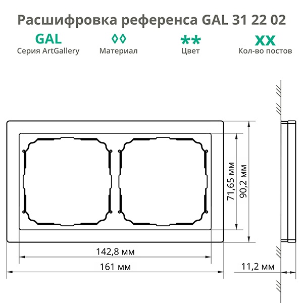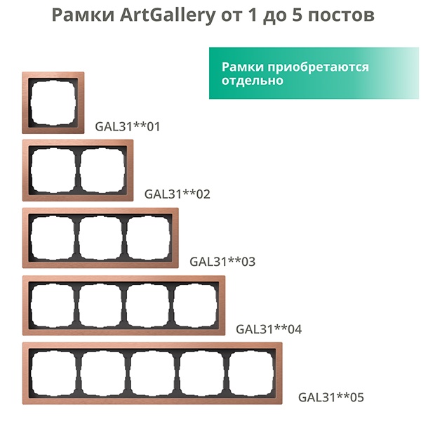 Металлическое декоративное обрамление цвета латунь ArtGallery Pure на два механизма GAL312202