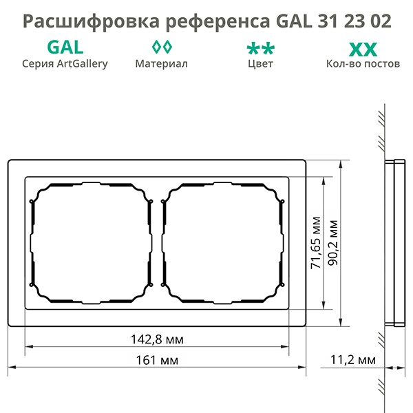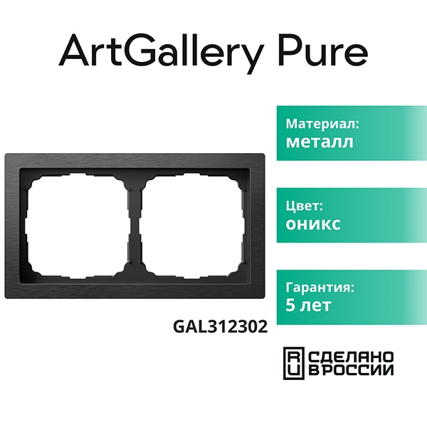 Металлическое декоративное обрамление цвета оникс ArtGallery Pure на два механизма GAL312302