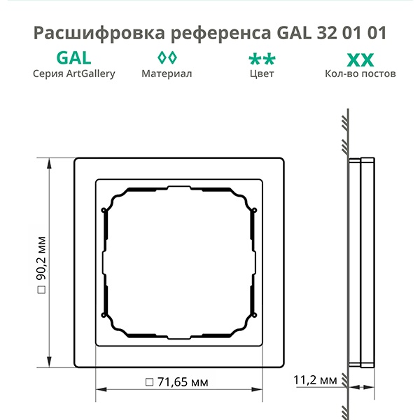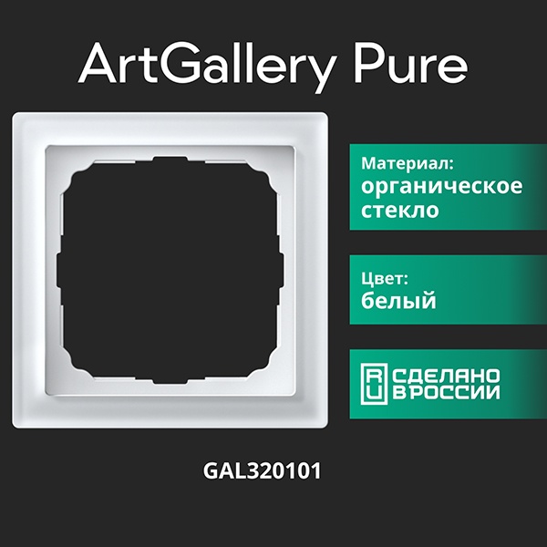 Декоративное обрамление белого цвета ArtGallery Pure из акрилового стекла на один механизм GAL320101