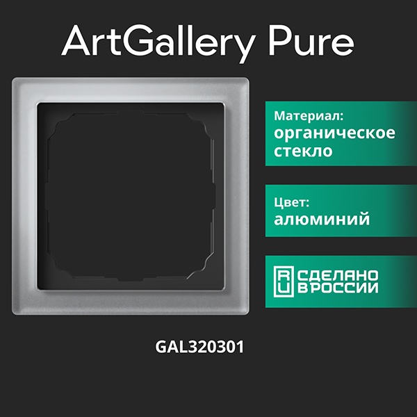 Декоративное обрамление алюминиевого цвета ArtGallery Pure из акрилового стекла на один механизм GAL320301
