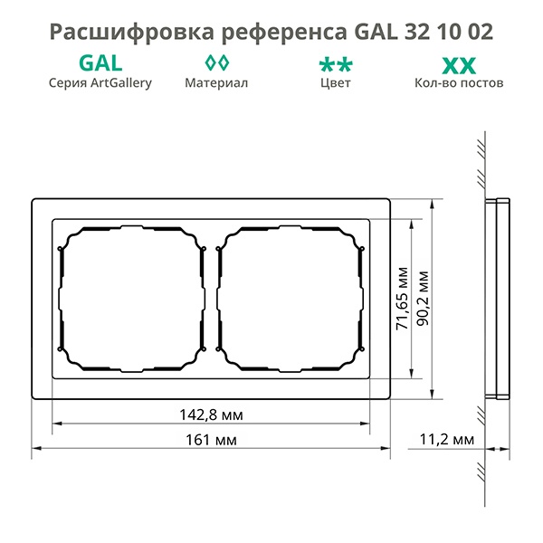 Декоративное обрамление черного цвета ArtGallery Pure из акрилового стекла на два механизма GAL321002