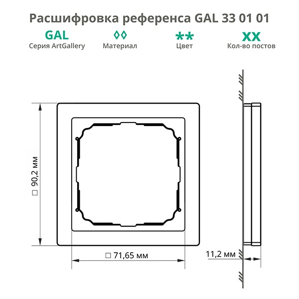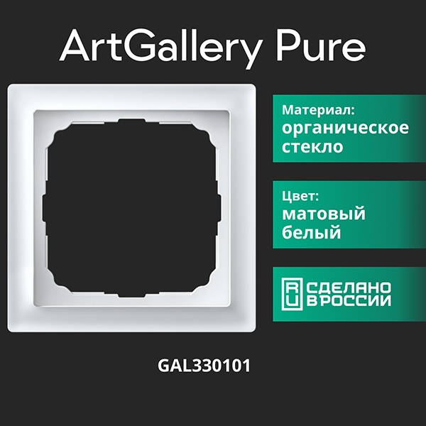 Декоративное обрамление белого цвета ArtGallery Pure из матового акрилового стекла на один механизм GAL330101