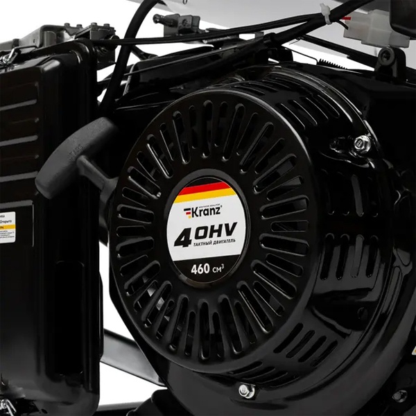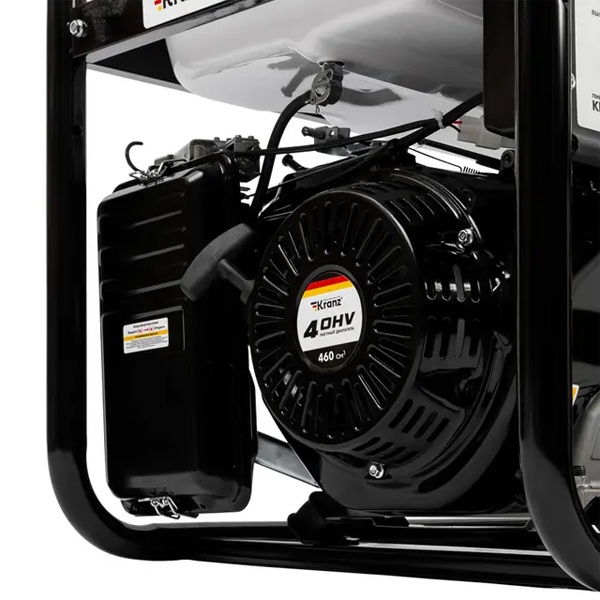 Генератор оснащён надёжным 1-цилиндровым 4-тактным двигателем объёмом 460 см? с воздушным охлаждением, стальным распределительным валом и литыми поршнями, что обеспечивает высокую производительность и длительный ресурс работы.