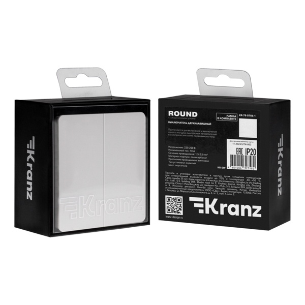 Встраиваемый 2-клавишный проходной выключатель Kranz Miele Round, цвет перламутр KR-78-0709-1