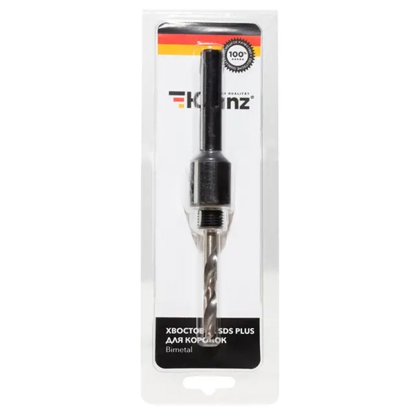 Держатель совместим с биметаллическими коронками диаметром от 14 до 30 мм, что делает его универсальным решением для сверления отверстий в металле, пластике, древесине, гипсокартоне и других материалах. Конструкция держателя предусматривает использование центрирующего сверла, которое облегчает начало сверления, повышает точность и снижает риск смещения коронки.