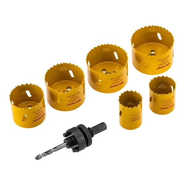 Набор биметаллических коронок KRANZ предназначен для строительных, монтажных и ремонтных работ. Он идеально подходит для сверления в безударном режиме различных материалов: дерева, стали, металлов, гипсокартона и пластика, и может использоваться с ручными дрелями, перфораторами и стационарными сверлильными станками.