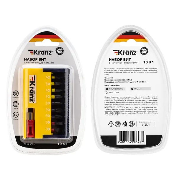 Набор бит с магнитным держателем для шуруповерта KR-92-0466