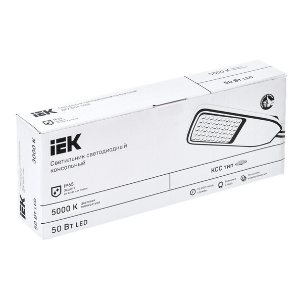 Серый влагозащищенный алюминиевый LED светильник ИЕК ДКУ-1004 на консольный кронштейн 48 мм, мощностью 50 Ватт, белый свет КСС Ш LDKU1-1004-050-5000-K03