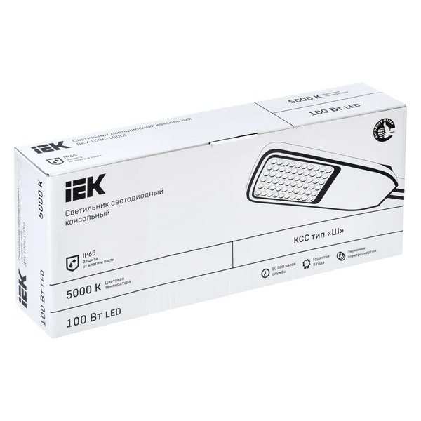 Серый влагозащищенный алюминиевый LED светильник ИЕК ДКУ-1004 на консольный кронштейн 60 мм, мощностью 100 Ватт, белый свет КСС Ш LDKU1-1004-100-5000-K03