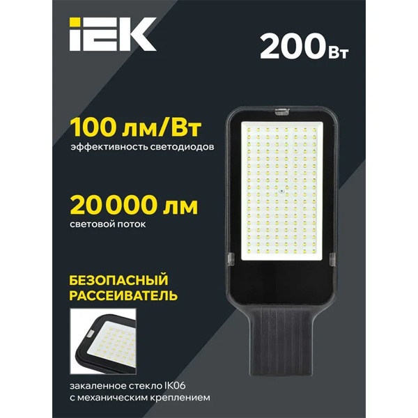 Консольный влагозащищенный светодиодный светильник ИЭК ДКУ 1013 для уличного освещения, мощностью 200 Ватт, дневной свет LDKU1-1013-200-5000-K03