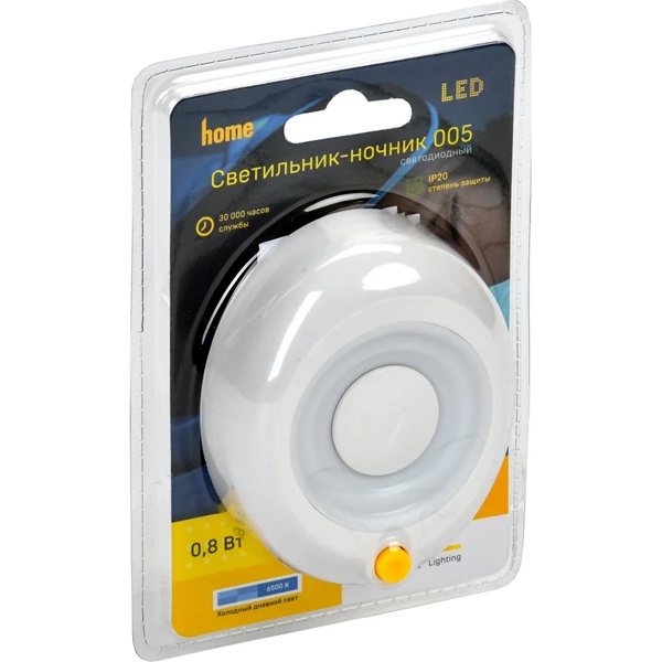 По конструкции это компактный ночник, рассчитанный на постоянную работу в розетке. Овальная форма удобна тем, что корпус не выглядит громоздко и не цепляет внимание, а световое пятно получается аккуратным: он не «бьет» узким лучом, а дает спокойную подсветку рядом. В реальной эксплуатации ценят именно это: ночью встал — видно пол и контуры, но глаза не получают яркого удара, как от верхнего света.