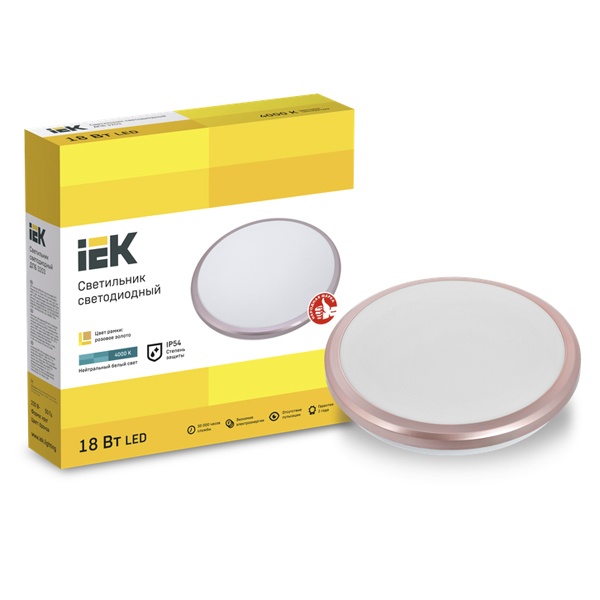 Круглый влагозащищенный светильник светодиодный ДПБ мощность 18 Вт, дневной свет, цвет розовое золото LDPB0-3203-18-4000-K01