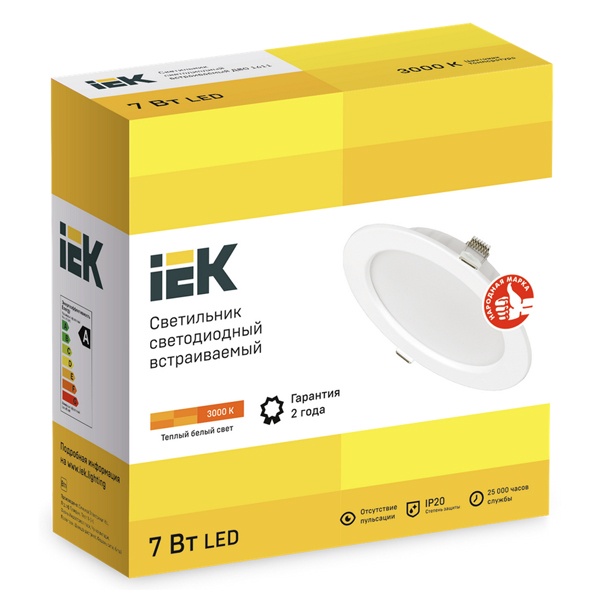 Встраиваемый потолочный LED светильник Даунлайт, мощностью 7 Ватт, теплый белый свет LDVO0-1611-07-3000-K01