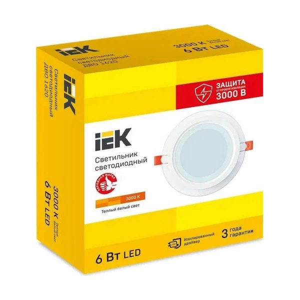 Светильник светодиодный IEK LED ДВО 1620 — компактный встраиваемый светильник с тёплым белым светом 3000К и декоративным стеклом. Подходит для аккуратной подсветки жилых и общественных помещений, где важны мягкое освещение, современный внешний вид и экономичное энергопотребление.