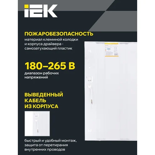 - Диапазон рабочих напряжений - 180-240 В (светодиодные панели сохраняют работоспособность при напряжении 265В со снижением срока службы.)