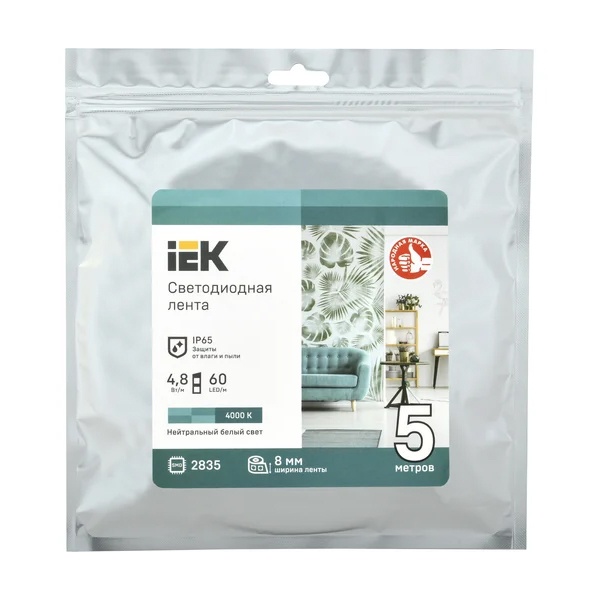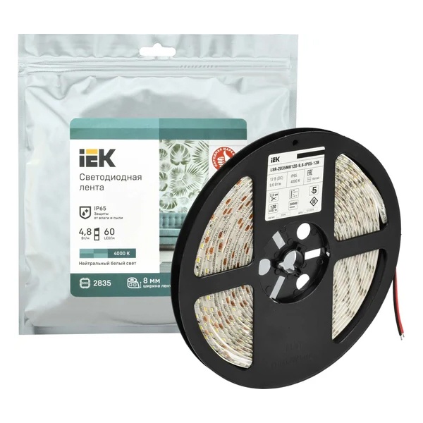 Лента светодиодная, влагозащищенная LSR2835, мощностью 9,6 Ватт на метр, нейтральный белый свет, длиной 5 метров LSR1-0-120-65-3-05