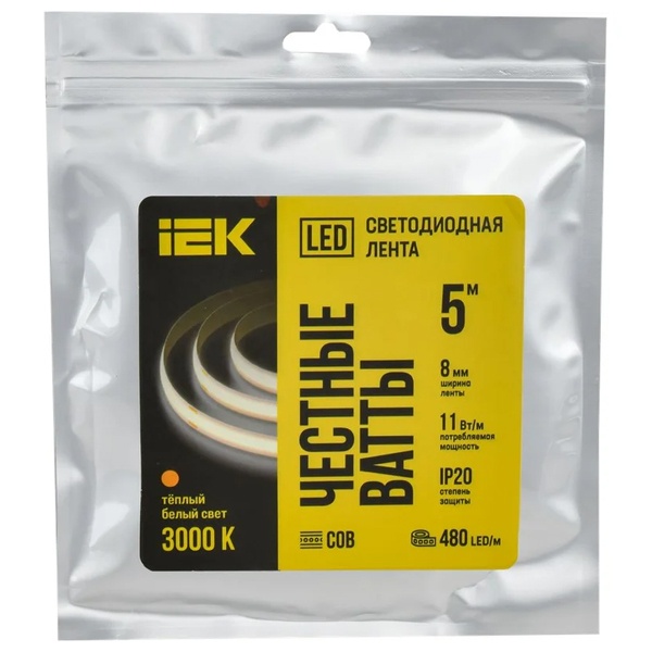 Светодиодная лента IEK с технологией COB (Chip On Board) и плотностью 480 светодиодов на метр предназначена для создания качественного и равномерного освещения. Она идеально подходит для декоративной подсветки мебели, ниш, барных стоек, витрин, оконных проемов, а также для оформления элементов интерьера — многоуровневых и подвесных потолков, карнизов, плинтусов и архитектурных деталей.