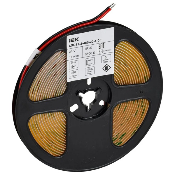 Лента светодиодная COB, 24В мощностью 11 Ватт на метр, холодный дневной свет, длина 5 метров LSR11-2-480-20-1-05