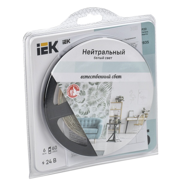 Лента светодиодная LSR2835, 24В 60LED мощностью 6 Ватт на метр, нейтральный белый свет, длиной 5 метров LSR6-0-060-20-1-05-1