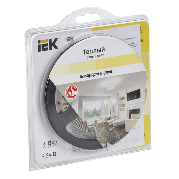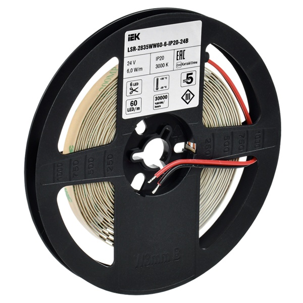 Лента светодиодная LSR2835, 24В 60LED мощностью 6 Ватт на метр, теплый свет, длиной 5 метров LSR6-1-060-20-1-05-1