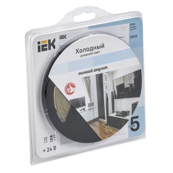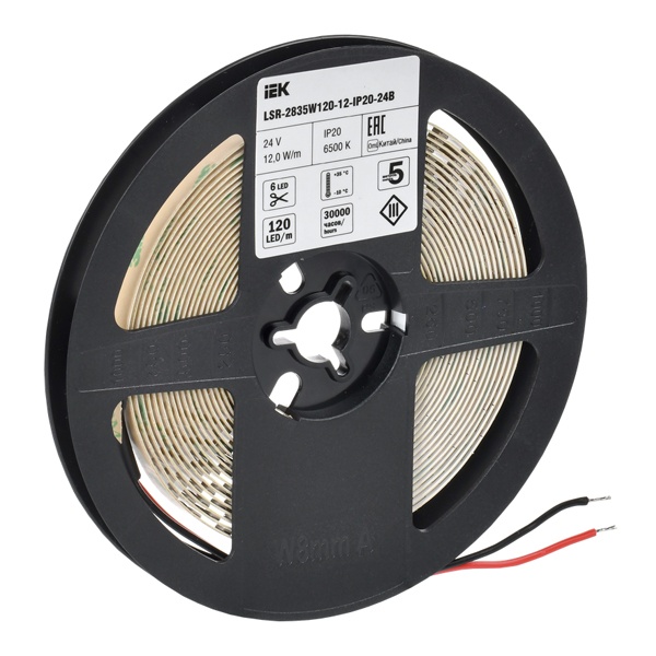 Лента светодиодная LSR2835, 24В 120LED мощностью 12 Ватт на метр, холодный дневной свет, длиной 5 метров LSR6-2-120-20-1-05-1