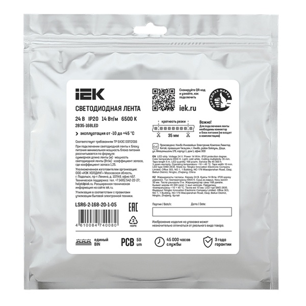 - Количество источников света на 1 метр погонный: 168