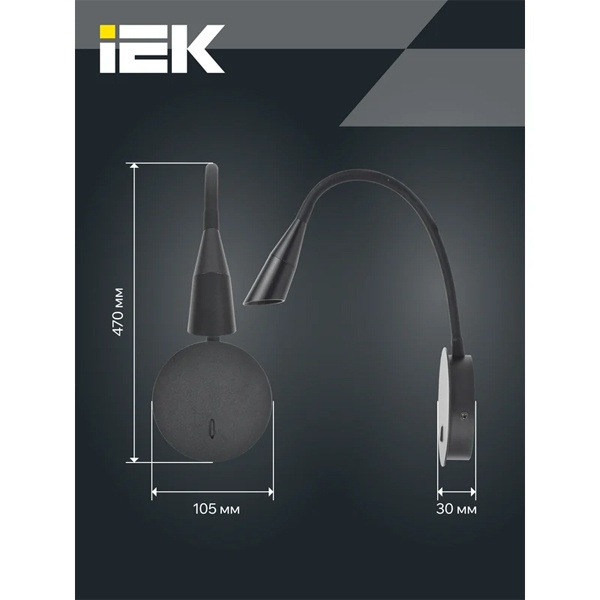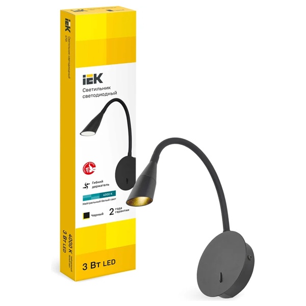 Светодиодный бра 3Вт теплого света на стену с выключателем, черного цвета LT-DBB0-4701-03-30-K02