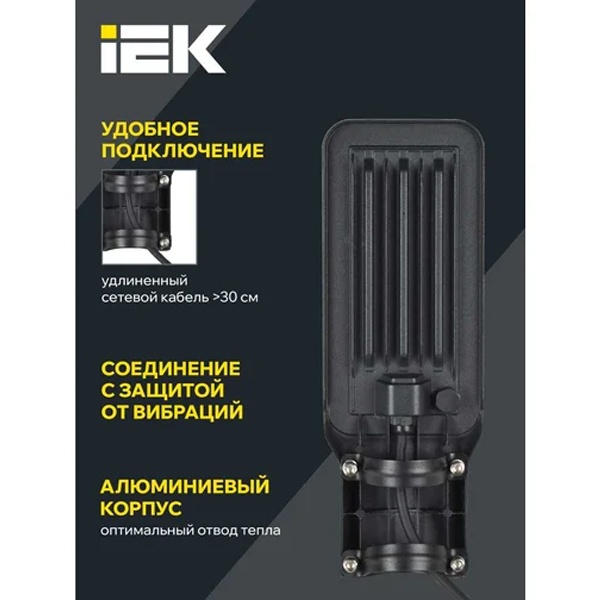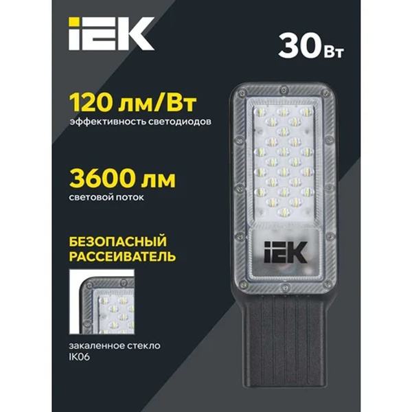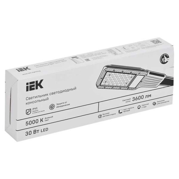 Уличный консольный светильник — это та самая вещь, от которой ждут простого: чтобы включился в любой сезон, светил ровно и не «умирал» после первой мокрой осени. IEK LED ДКУ 1011-30Ш на 30 Вт как раз из этой практичной категории: компактный, аккуратный по внешнему виду и с нейтрально-холодным светом 5000K, который хорошо «собирает» картинку на дороге и во дворе. Черный корпус смотрится спокойно и не бросается в глаза на опорах и фасадах.