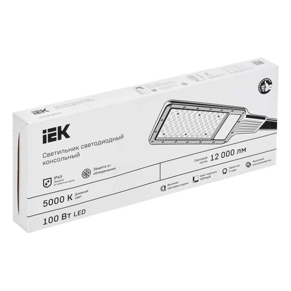Черный влагозащищенный алюминиевый светодидный светильник ИЕК ДКУ-1011 на консольный кронштейн 50 мм, мощностью 100 Ватт, белый свет КСС Ш LT-DKU1-1011-100-50-K03