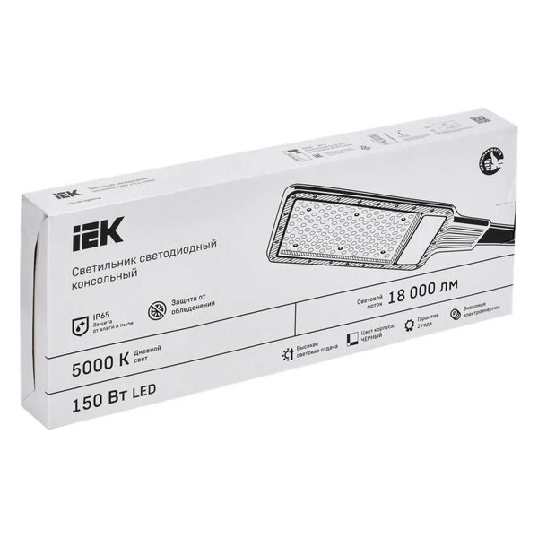 Черный влагозащищенный алюминиевый светодидный светильник ИЕК ДКУ-1011 на консольный кронштейн 50 мм, мощностью 150 Ватт, белый свет КСС Ш LT-DKU1-1011-150-50-K03