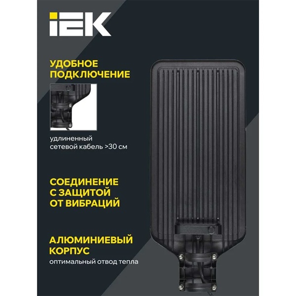 Черный влагозащищенный алюминиевый светодидный светильник ИЕК ДКУ-1011 на консольный кронштейн 50 мм, мощностью 200 Ватт, белый свет КСС Ш LT-DKU1-1011-200-50-K03