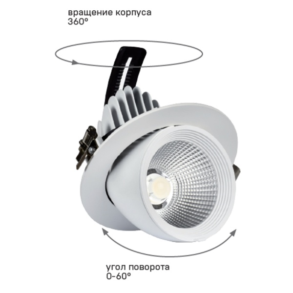 Преимущества:- Поворотный механизм светильника с углом наклона от 0° до 30° обеспечивает простую регулировку направления светового потока.