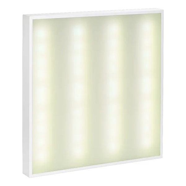 Универсальный потолочный светильник квадратный 595*595 накладной и встраиваемый в Армстронг с опаловым рассеивателем LTP-DVO1-1001-40-40-K01