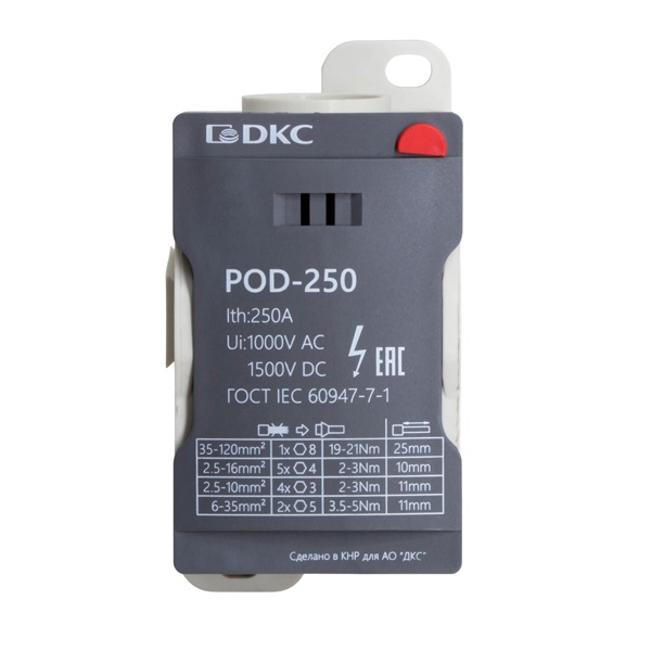 Однополюсный распределительный клеммный блок DKC POD, номинальный ток 250 Ампер POD-250