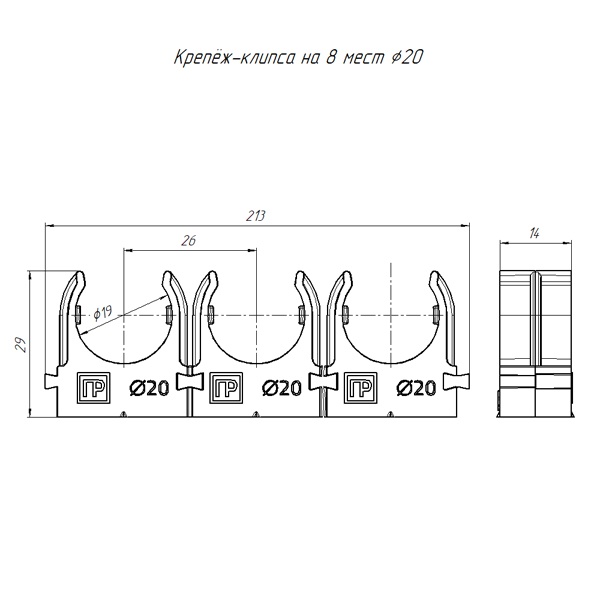 Серый пластиковый атмосферостойкий держатель для 8ми гофрированных и гладких труб диаметром 20 мм, для строительного пистолета PR13.02862