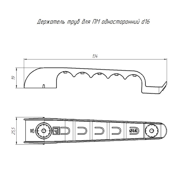 Односторонний держатель обеспечивает возможность одновременной установки нескольких труб, что делает его особенно удобным при монтаже кабельных трасс и инженерных коммуникаций.