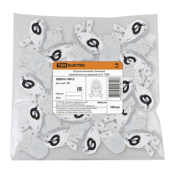 Втычной патрон G13 на стойке для линейных люминесцентных ламп Т8 SQ0351-0012