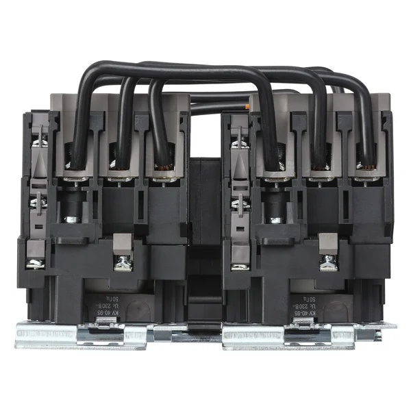 Контактор оснащён четырьмя вспомогательными контактами — двумя нормально открытыми (2 НО) и двумя нормально закрытыми (2 НЗ), что позволяет легко реализовывать схемы электрических и механических блокировок, автоматического управления, а также цепи индикации и сигнализации. Конструкция реверсивного контактора обеспечивает электрическую и механическую блокировку, предотвращающую одновременное включение противоположных направлений вращения двигателя.