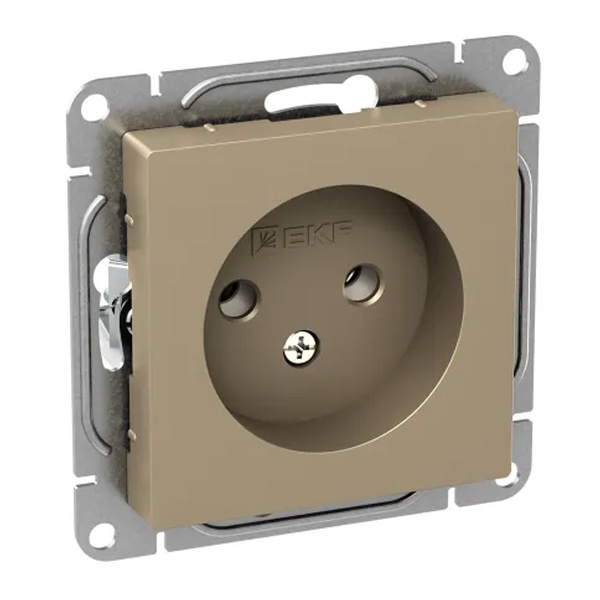 Электрическая розетка с заземляющим контактом скрытой установки цвет шампань, винтовое подключение ЕКФ Эпика UP1-SOC-110