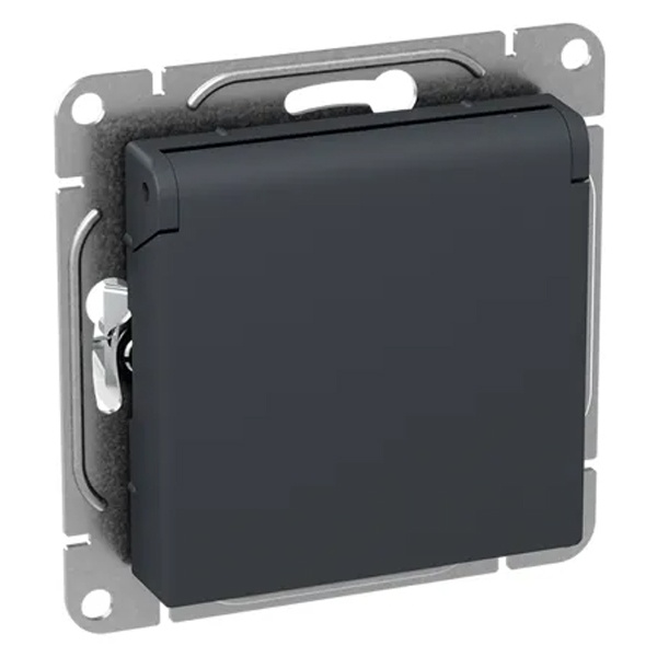 Электрическая розетка с защитным заземлением, шторками и откидной крышкой, скрытой установки цвет графит, винтовое подключение ЕКФ Эпика UP1-SOG-111-44