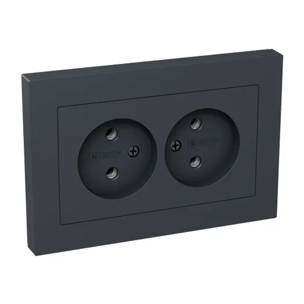 Электрическая двухместная двухполюсная розетка скрытой установки в одну монтажную коробку цвет графит, винтовое подключение ЕКФ Эпика UP1-SOG-200