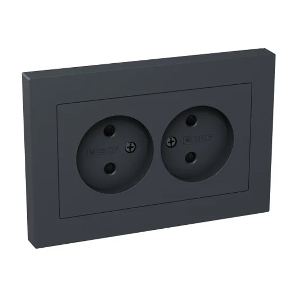 Электрическая двухместная двухполюсная розетка, шторки, скрытой установки в одну монтажную коробку цвет графит, винтовое подключение ЕКФ Эпика UP1-SOG-201