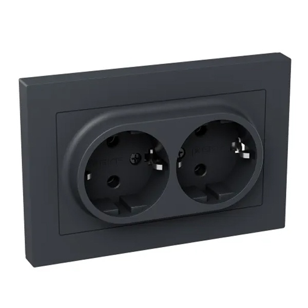 Электрическая двухместная розетка с заземляющим контактом и шторками скрытой установки в одну монтажную коробку цвет графит, винтовое подключение ЕКФ Эпика UP1-SOG-211