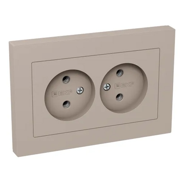 Электрическая двухместная двухполюсная розетка скрытой установки в одну монтажную коробку цвет кремовый, винтовое подключение ЕКФ Эпика UP1-SOI-200